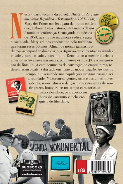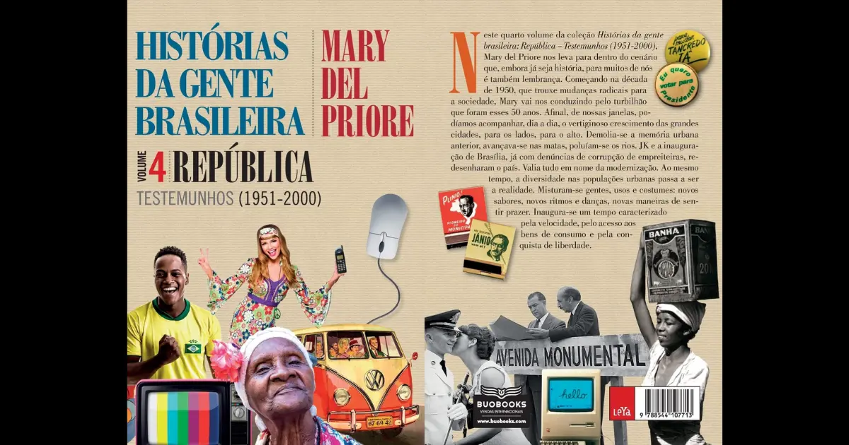 Abordando as décadas de 1950 a 2000, Mary del Priore encerra sua série sobre a história do Brasil pelo ponto e vista do cidadão comum Mary del Priore encerra suas Histórias da gente brasileira com República: Testemunhos (1951-2000), quarto volume da série, abordando a segunda metade do século XX, período em que atravessamos sucessivas tensões políticas e passamos por inúmeras mudanças sociais. A premiada historiadora detalha as transformações que definiram o país em que vivemos hoje. Nas páginas do livro (re)visitamos um Brasil que viu suas cidades se verticalizarem e seguiu por uma odisseia no espaço doméstico. Mary constrói uma narrativa saborosa entremeada com testemunhos de quem viveu nesse tempo – anônimos e famosos, mas sempre sob um olhar muito pessoal –, registrando as mudanças nas ruas, salas de estar, jardins, geladeiras, estantes, guarda-roupas e lençois. Em cerca de cinquenta anos, a vida da gente brasileira mudou mais do que nos quatro séculos anteriores. Para muitos, o período entre a infância e a maturidade foi marcado por mudanças – no trabalho, na comunicação, no lazer, na saúde, na cama – que transformaram o modo de viver e as percepções do mundo. Foi um tempo caracterizado pelo acesso a novos bens de consumo, pela conquista de uma nova liberdade, por novas formas de pensar a intimidade. Assim, no volume 4 das Histórias da gente brasileira, Mary del Priore convida o leitor a compreender as agruras do presente ao evocar um passado próximo – em especial os anos entre 1964 e 2002. Nesse período se encontram tanto as controversas duas décadas conhecidas como Anos de Chumbo (descritas pela autora a partir da restituição das complexidades do período, sem estabelecer uma narrativa de mocinhos e bandidos) e a intensa transição para a democracia. É uma fatia da história em que chama atenção o insólito, o extraordinário, que rompe a cadência dos dias: o golpe, para os opositores do regime, ou revolução, segundo seus defensores; o clamor pelas Diretas Já; a morte de Tancredo Neves; e o impeachment de Fernando Collor de Mello, após a primeira eleição direta depois do fim do regime militar. Há também embates com as sempre rígidas posições da Igreja: pílulas, não! Sexo é para procriação. As mulheres vão deixar passar essa chance de libertação? Para casar, tem de ser virgem? Geisel aprova a Lei do Divórcio e deixa a bomba do planejamento familiar para seu sucessor, Figueiredo. A “família tradicional” desorganiza-se. O corpo “pecado”, aos poucos, vai se revendo, buscando os ventos da moda, atendendo aos apelos do sol e do ar livre até virar o corpo “prazer”. Mas tudo isso surge pelo ponto de vista das ruas, do cidadão comum, incluindo relatos diversos de pessoas que viveram esse tempo. São testemunhos da gente brasileira que viu, sentiu e se relacionou com o clima político, com os avanços sociais, com as conquistas das Copas do Mundo. Assim, ao fim do livro e das admiráveis Histórias da gente brasileira, temos a sensação de que entramos no texto e dele participamos; de que estão ali, de fato, as nossas histórias, as histórias desse Brasil tão rico e tão diferente.