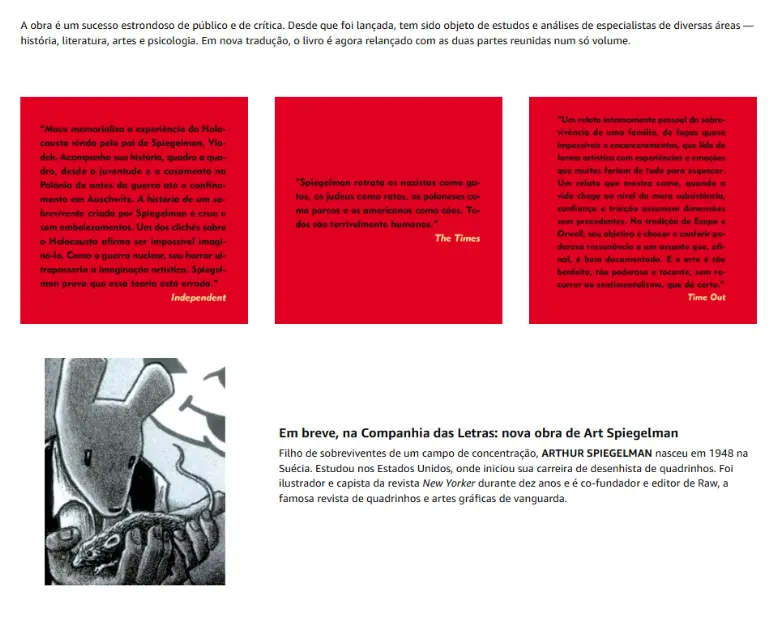 “Maus é uma obra-prima. Como todas as grandes histórias, diz mais sobre nós mesmos do que poderíamos imaginar.” ― The Guardian