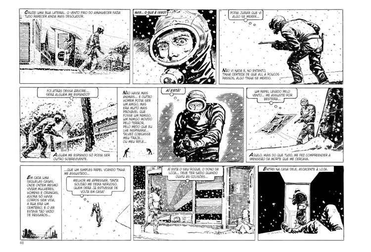 Francisco Solano López nasceu em 1928, em Buenos Aires, descendente do famoso general paraguaio de mesmo nome. Entusiasta de quadrinhos desde a infância, formou-se em direito e trabalhou em um banco, até que uma conversa com o veterano José Luis Salinas o convenceu a perseguir carreira como desenhista. Estreou em 1951, na revista El Tony, e logo passou a integrar a equipe da editora Abril, firmando sua primeira parceria com Oesterheld na série Bull Rocket. Quando Héctor decidiu sair para fundar a Frontera, López foi junto, e foi ali que os dois conceberam sua grande obra-prima, O Eternauta. Mesmo assim, os pagamentos na Argentina eram baixos e ele decidiu tentar a sorte no mercado europeu, mudando-se para Londres e estabelecendo uma longa relação com a editora britânica Fleetway. Nos anos 1970, de volta a Buenos Aires, juntou-se novamente a Oesterheld para a criação de O Eternauta II. Mas com o desaparecimento do amigo e o clima político cada vez mais repressivo, voltou para a Europa, de onde colaborou com outros autores argentinos exilados, como Ricardo Barreiro, com quem assina as ficções científicas Slot-Barr e Ministério, e Carlos Sampayo, com quem publicou o suspense policial Evaristo. Chegou a trabalhar para o mercado norte-americano, desenhando quadrinhos eróticos para a editora Fantagraphics, morou por alguns anos no Rio de Janeiro, e retomou O Eternauta nos anos 2000 em um longo terceiro capítulo, com roteiro de Pablo Maiztegui. Faleceu em 2011, tendo construído uma trajetória brilhante como um dos maiores artistas da América Latina.