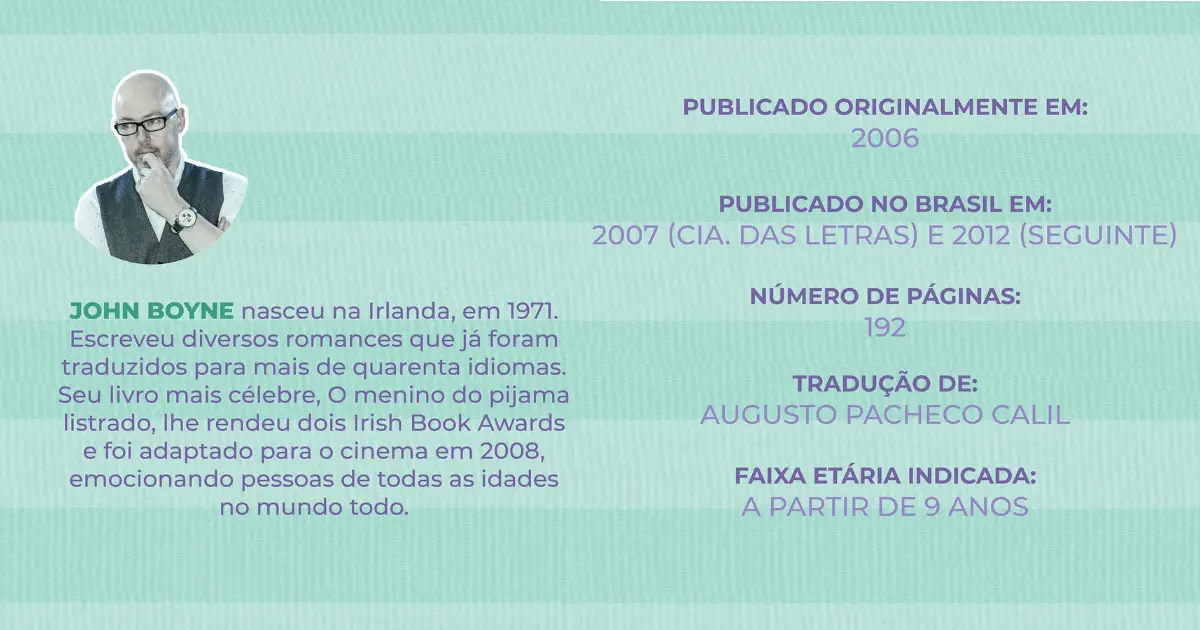 John Boyne é um escritor irlandês nascido em 1971, amplamente conhecido por seus romances que exploram temas históricos, emocionais e morais com forte apelo humano. Seu livro mais famoso, O Menino do Pijama Listrado, tornou-se um fenômeno mundial, traduzido para dezenas de idiomas e adaptado para o cinema, destacando-se por abordar o Holocausto sob uma perspectiva inocente e profundamente comovente. Autor prolífico, Boyne escreveu obras tanto para adultos quanto para jovens, transitando entre dramas históricos, narrativas contemporâneas e reflexões psicológicas, sempre marcado por uma escrita sensível, direta e capaz de provocar intensa empatia no leitor.