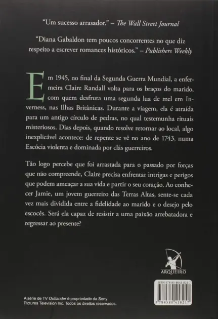 Tão logo percebe que foi arrastada para o passado por forças que não compreende, Claire precisa enfrentar intrigas e perigos que podem ameaçar a sua vida e partir o seu coração. Ao conhecer Jamie, um jovem guerreiro das Terras Altas, sente-se cada vez mais dividida entre a fidelidade ao marido e o desejo pelo escocês. Será ela capaz de resistir a uma paixão arrebatadora e regressar ao presente?