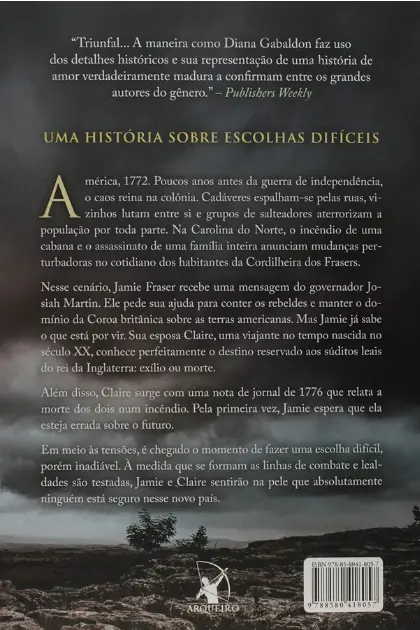 Nesse cenário, Jamie Fraser recebe uma mensagem do governador Josiah Martin. Ele pede sua ajuda para conter os rebeldes e manter o domínio da Coroa britânica sobre as terras americanas. Mas Jamie já sabe o que está por vir. Sua esposa, Claire, uma viajante no tempo nascida no século XX, conhece perfeitamente o destino reservado aos súditos leais do rei da Inglaterra: exílio ou morte.